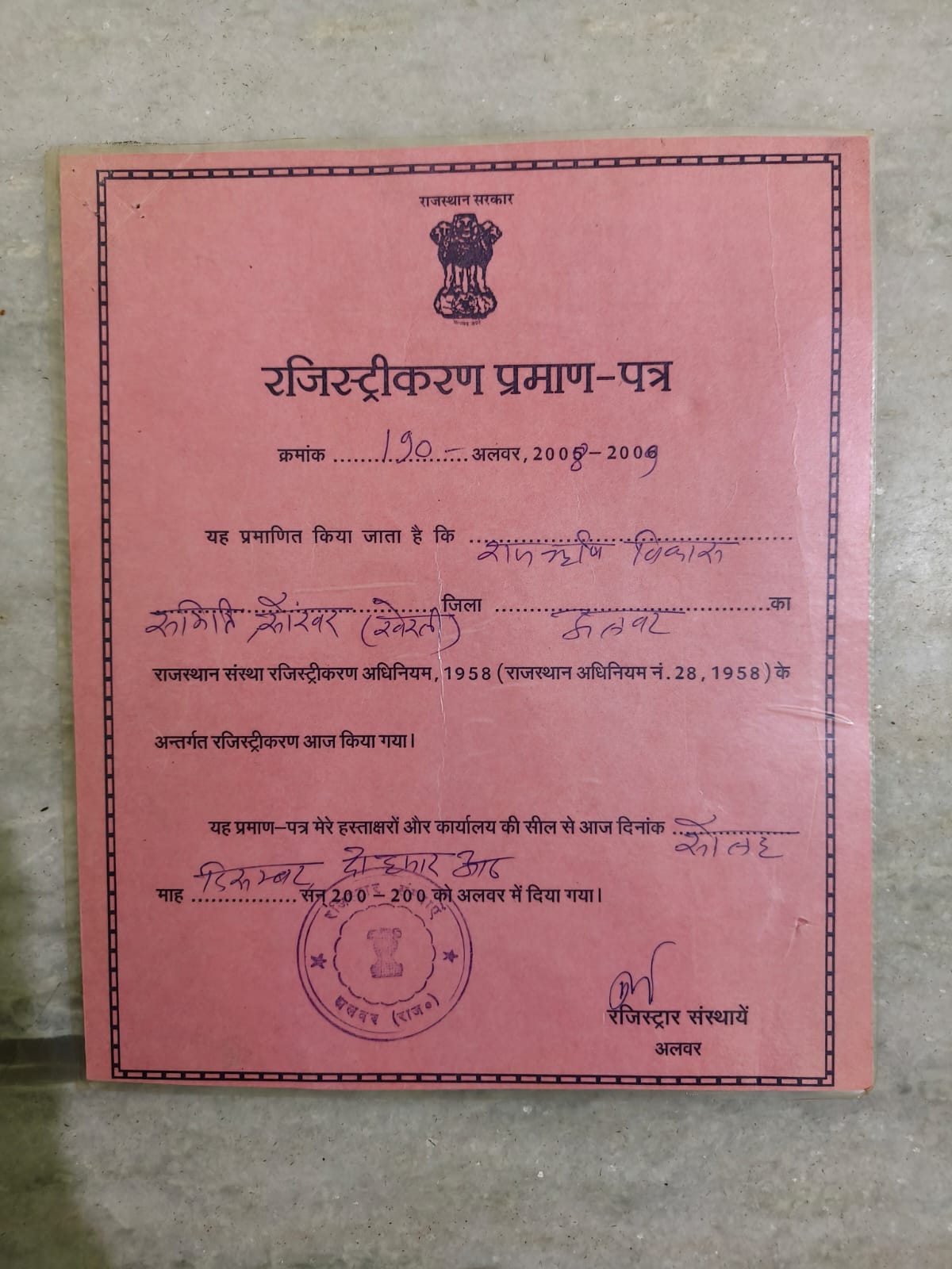 | Address of the Institute | INFRONT OF PAPER MEEL, KATHUMER ROAD, ALWAR 321606 |